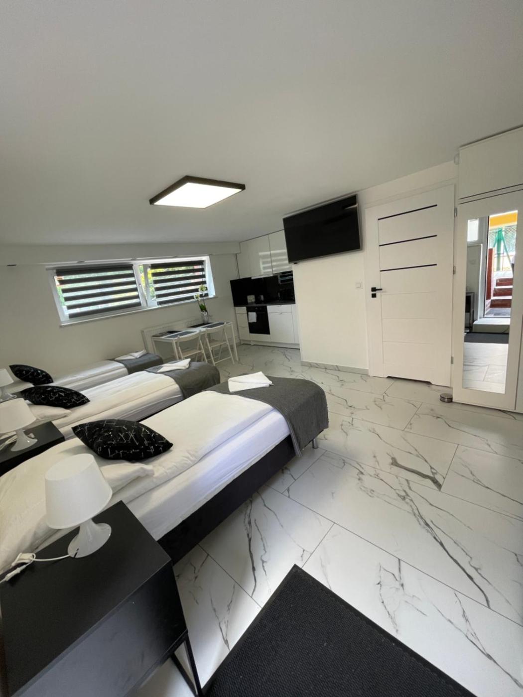 Studio typu Deluxe. Guests can make meals in the kitchen that is equipped with a stovetop, a refrigerator, kitchenware and an oven. The studio provides air conditioning, a washing machine, a terrace with garden views as well as a private bathroom featuring a walk-in shower. The unit offers 3 beds. Studio - 3 osobowy. Powierzchnia pokoju ok.: 25 mkw.
