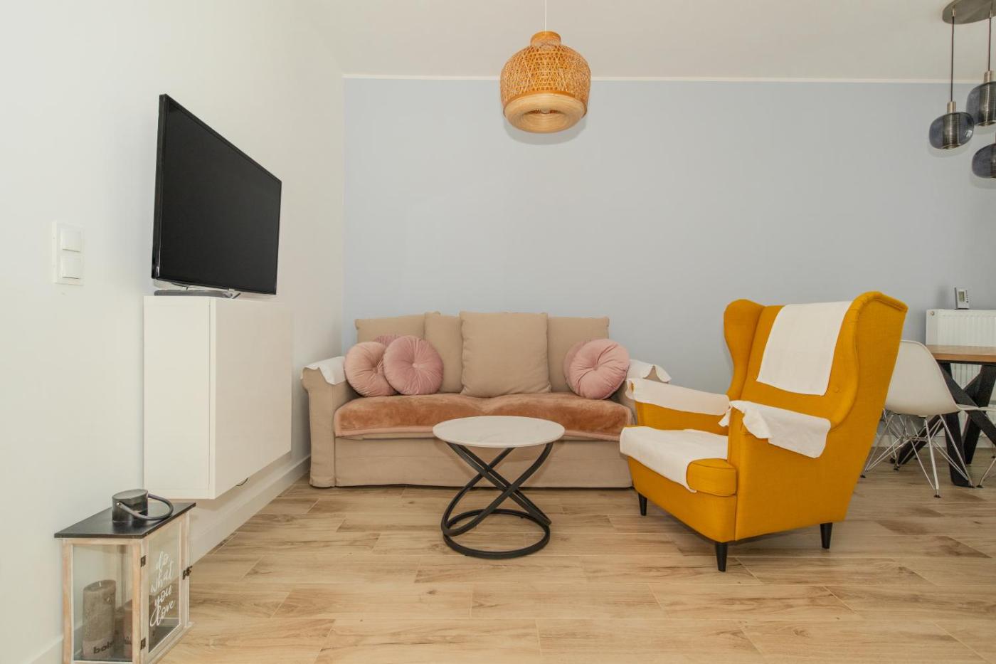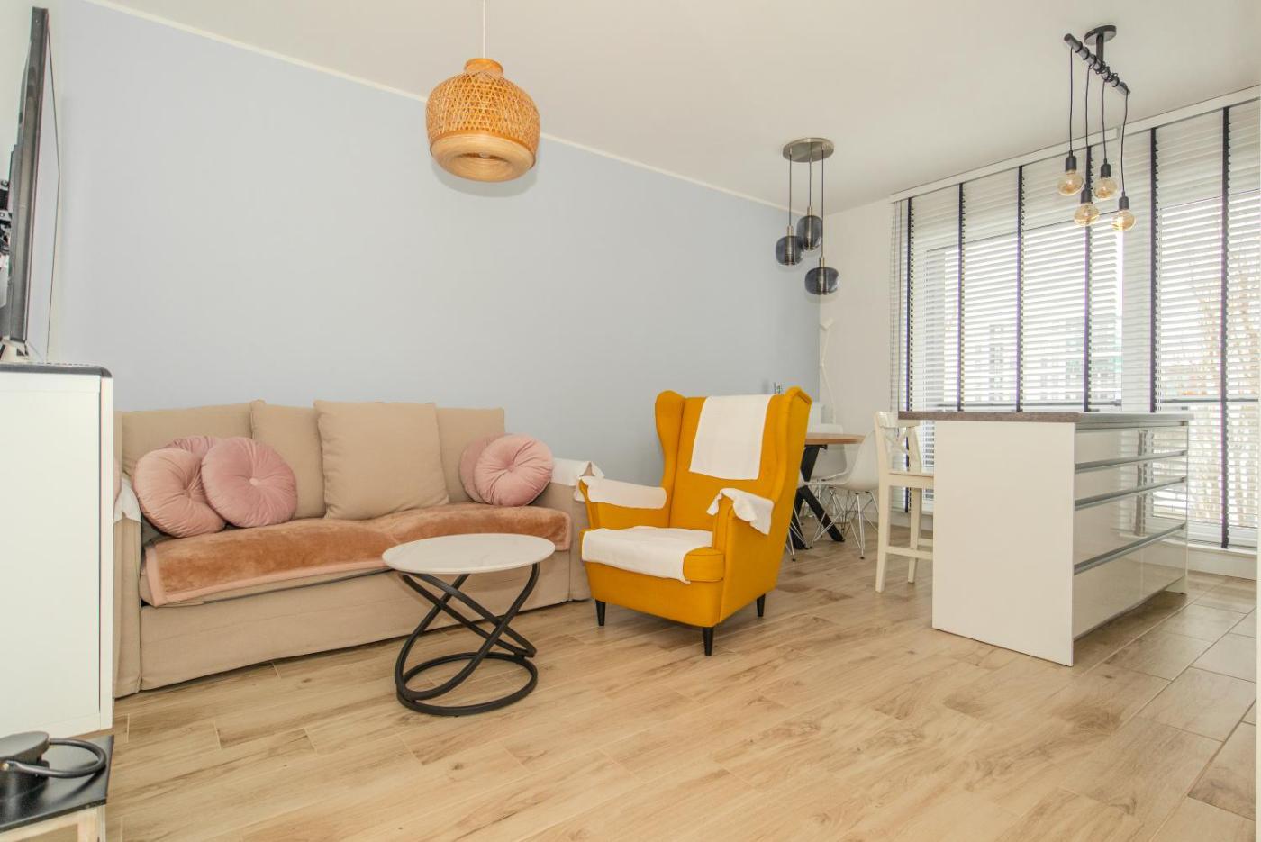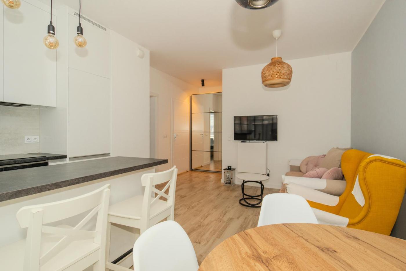Apartament z 1 sypialnią. Boasting a private entrance, this apartment includes 1 living room, 1 separate bedroom and 1 bathroom with a bath and a hairdryer. In the well-fitted kitchen, guests will find a stovetop, a refrigerator, a dishwasher and kitchenware. Featuring a balcony with ancourtyard view, this apartment also offers a washing machine and a flat-screen TV with cable channels. The unit has 2 beds. Apartament - 4 osobowy. Powierzchnia pokoju ok.: 45 mkw.