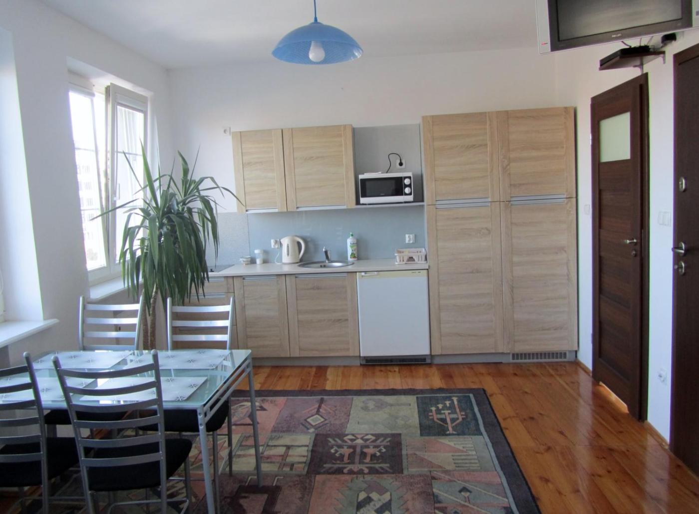 Studio. Meals can be prepared in the well-fitted kitchenette, which comes with a stovetop, a refrigerator, kitchenware and a microwave. The studio provides an electric kettle, parquet floors, as well as a private bathroom featuring a shower and a hairdryer. The unit offers 2 beds. Studio - 4 osobowy. Powierzchnia pokoju ok.: 26 mkw.