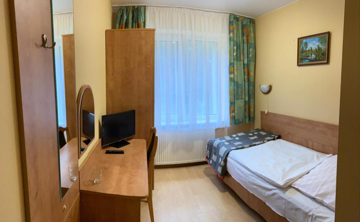 Mały pokój jednoosobowy. The single room features a wardrobe and heating, as well as a private bathroom boasting a walk-in shower. This single room provides a flat-screen TV. The unit has 1 bed. Pokój Jednoosobowy - 1 osobowy. Powierzchnia pokoju ok.: 8 mkw.