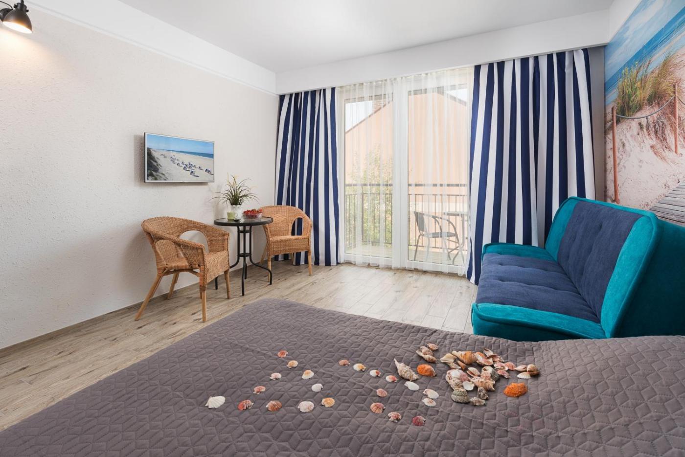 Apartament typu Studio Deluxe z balkonem. This suite consists of 1 living room, 1 separate bedroom and 1 bathroom with a hairdryer. Guests can make meals in the kitchenette that is equipped with a stovetop, a refrigerator, kitchenware and an electric kettle. A seating area with a flat-screen TV, a dining area and a terrace are provided in this suite. The unit offers 3 beds. Apartament typu Suite - 6 osobowy. Powierzchnia pokoju ok.: 35 mkw.