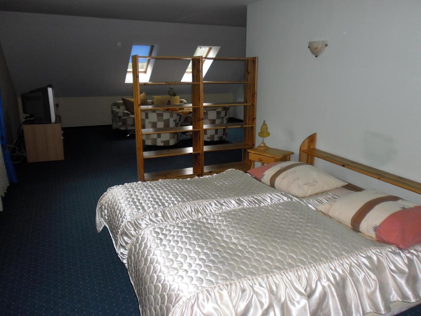 Pokój typu Superior z łóżkiem typu queen-size. The double room includes a private bathroom fitted with a shower. The spacious double room features a flat-screen TV with satellite channels, a wardrobe, a carpeted floor and heating. The unit has 2 beds. Pokój Dwuosobowy - 3 osobowy. Powierzchnia pokoju ok.: 40 mkw. ;