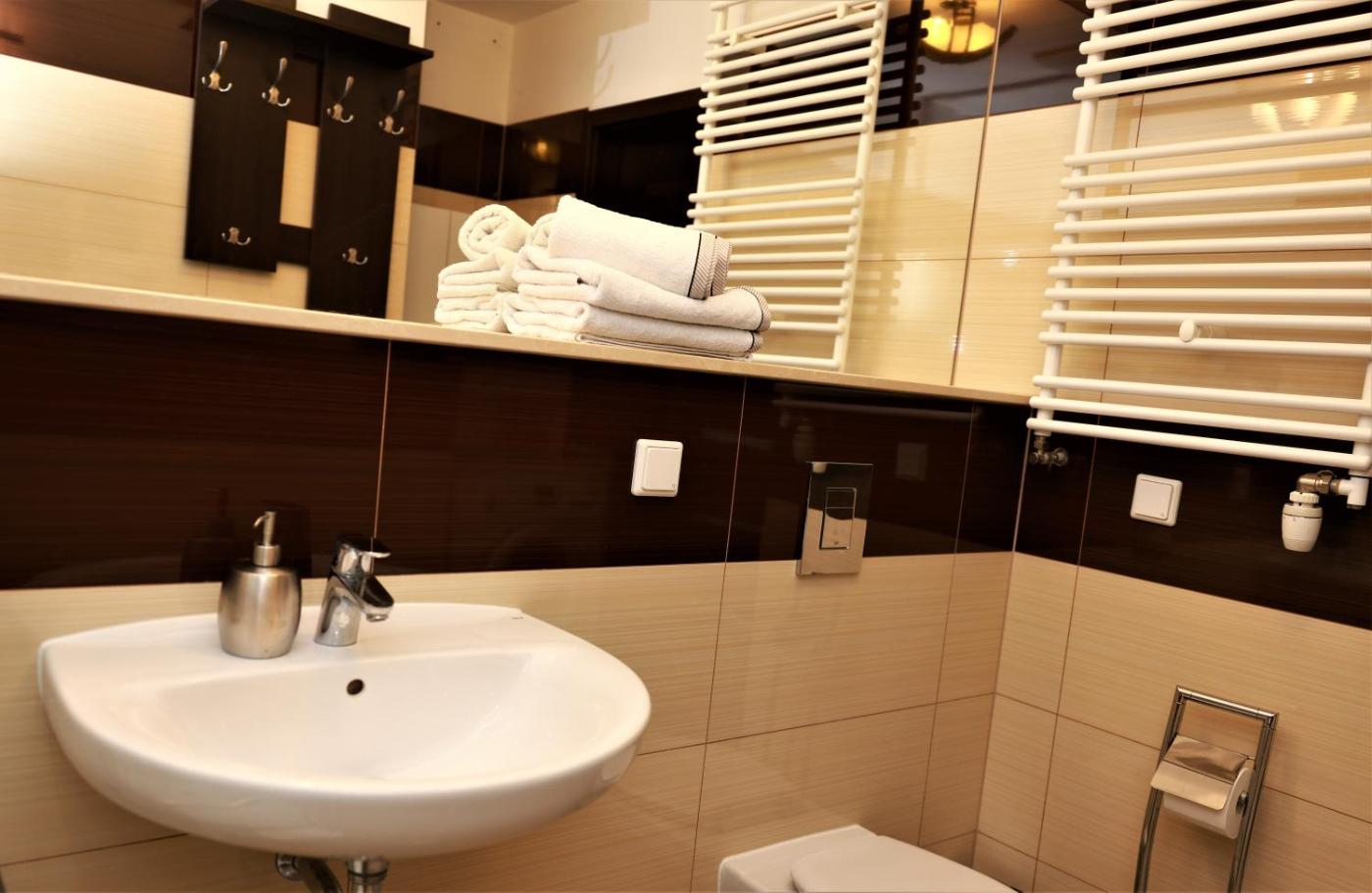 W miejscach zakwaterowania gości oraz ważnych częściach wspólnych znajdują się środki do dezynfekcji rąk