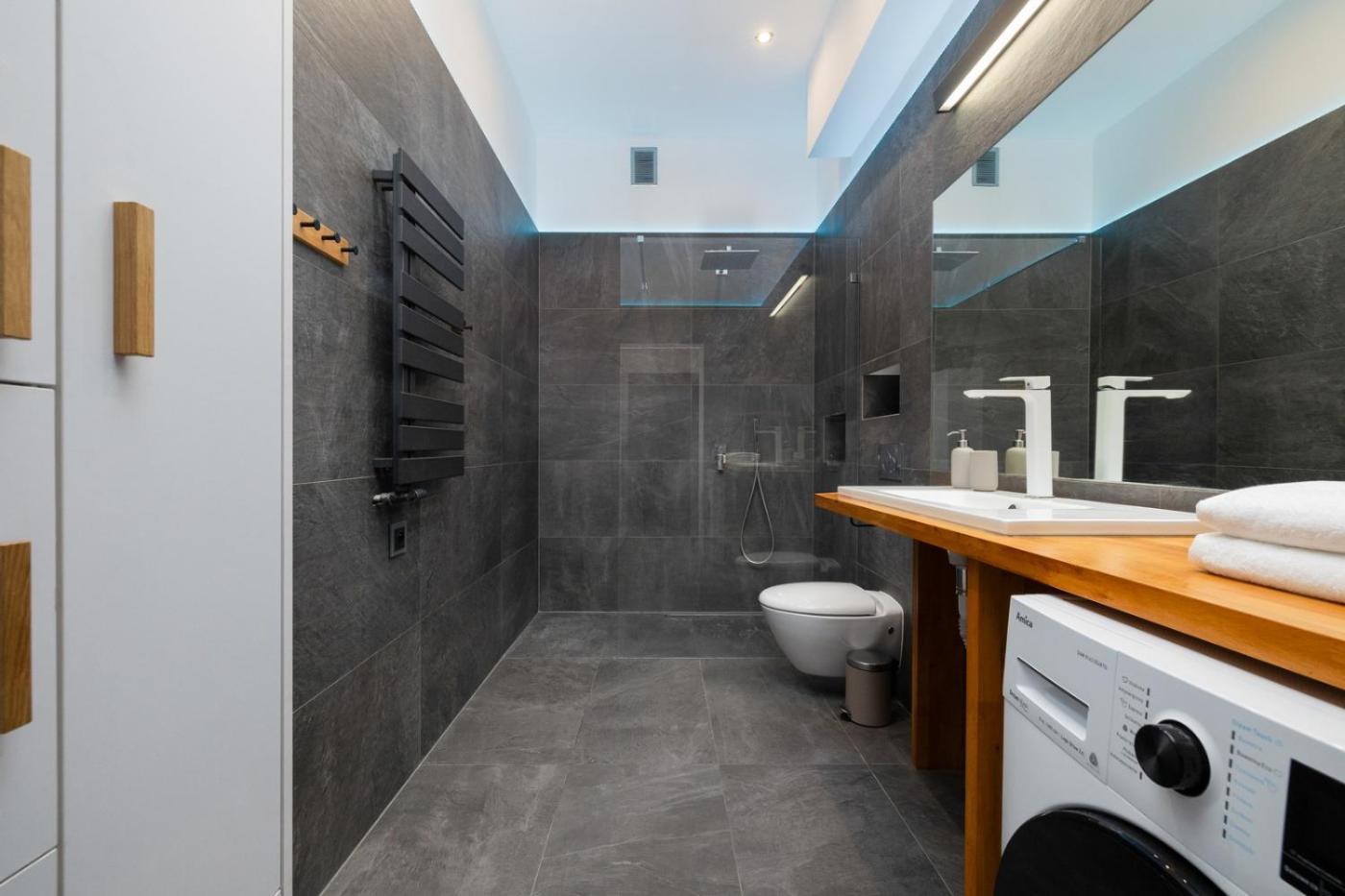 Apartament z 1 sypialnią. This apartment is comprised of 1 living room, 1 separate bedroom and 1 bathroom with a shower. The well-fitted kitchen features a refrigerator, a dishwasher, kitchenware and an oven. The apartment offers a flat-screen TV, a washing machine, a dining area, an electric kettle as well as a quiet street view. The unit offers 2 beds. Apartament - 4 osobowy. Powierzchnia pokoju ok.: 52 mkw.