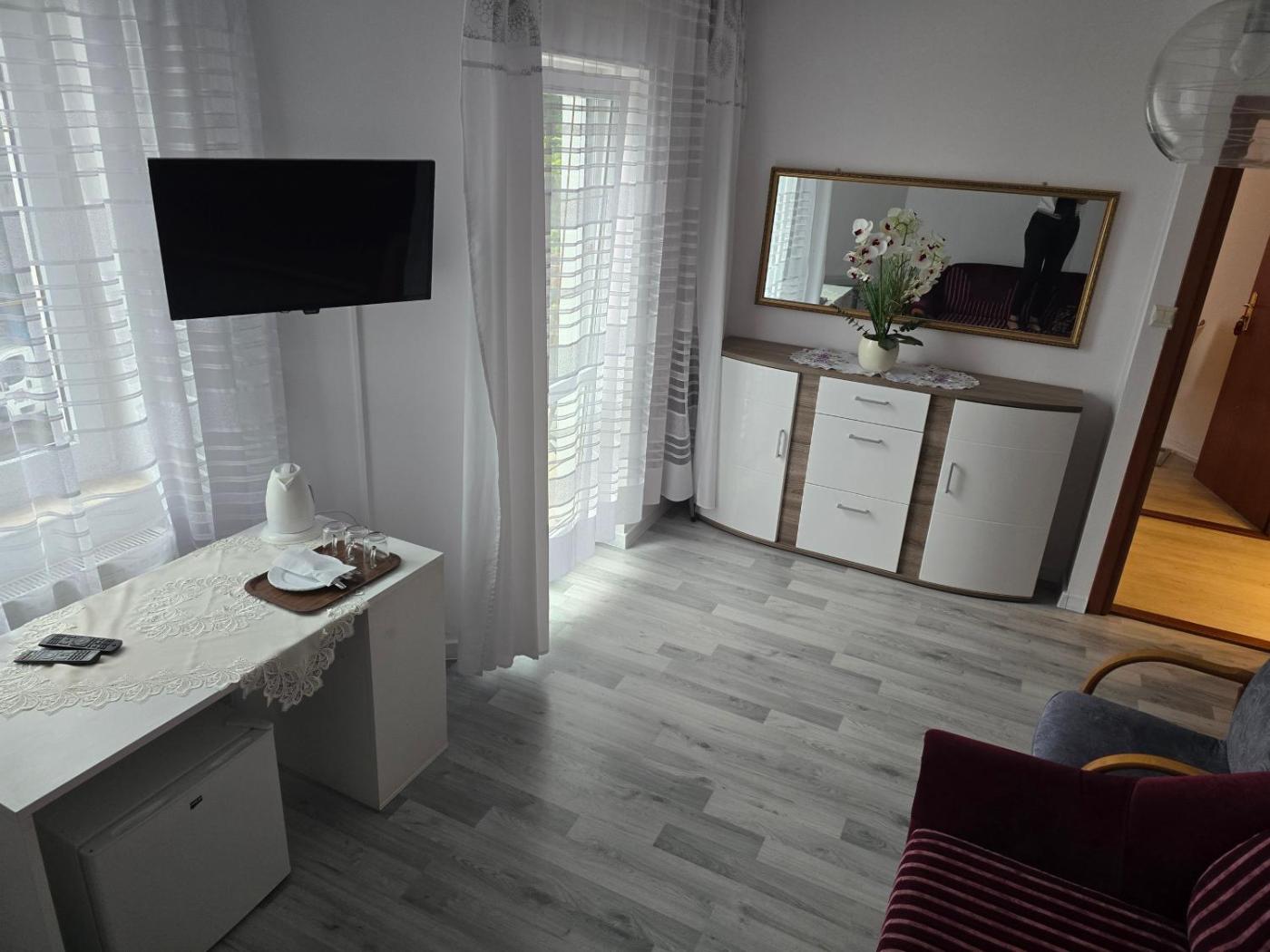 Pokój Dwuosobowy z balkonem. The double room offers a tea and coffee maker and a wardrobe, as well as a private bathroom featuring a walk-in shower. This double room features a tiled floor, a flat-screen TV and a balcony. The unit offers 1 bed. Pokój Dwuosobowy - 2 osobowy. Powierzchnia pokoju ok.: 14 mkw. ;
