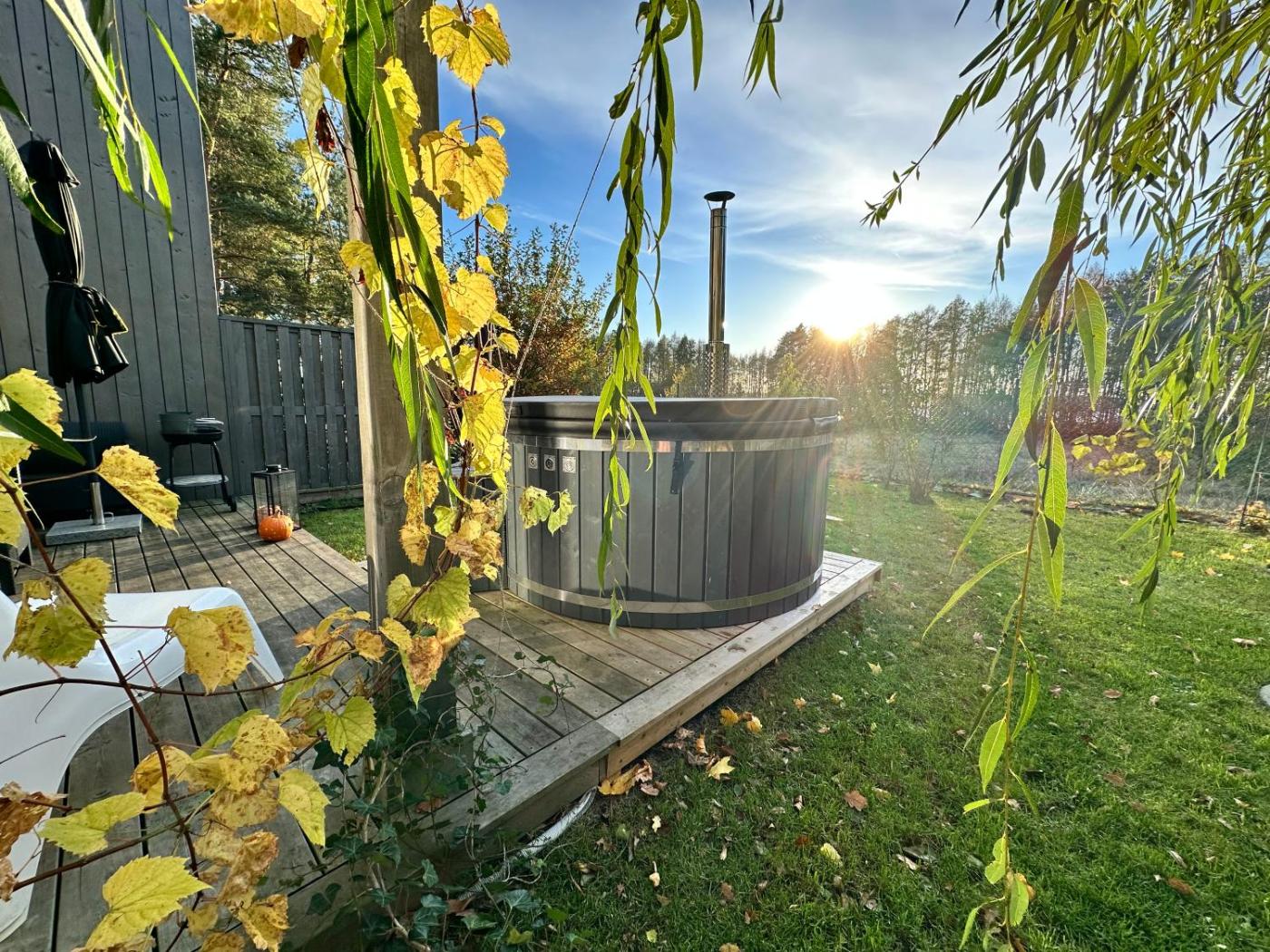 Dom z 2 sypialniami. Guests will have a special experience as this holiday home offers a hot tub, a sauna and a fireplace. Boasting a private entrance, this holiday home features 1 living room, 2 separate bedrooms and 1 bathroom with a shower and a bidet. Guests will find a stovetop, a refrigerator, a dishwasher and kitchenware in the kitchen. The holiday home also comes with a barbecue. Featuring a terrace with lake views, this holiday home also features a washing machine and a flat-screen TV with streaming services. The unit has 3 beds. Dom wakacyjny - 6 osobowy. Powierzchnia pokoju ok.: 70 mkw.