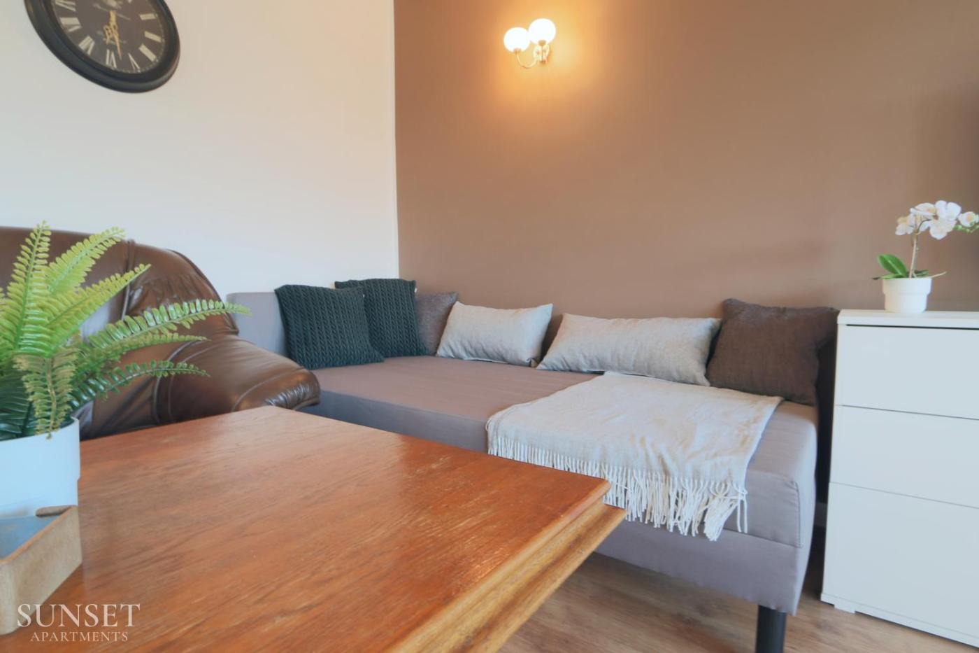 Apartament z 2 sypialniami. This apartment includes 1 living room, 2 separate bedrooms and 1 bathroom with a shower and free toiletries. In the kitchenette, guests will find a stovetop, a refrigerator, kitchenware and an oven. The apartment has parquet floors, a seating area with a flat-screen TV, a washing machine, a coffee machine, as well as a dining area. The unit has 2 beds. Apartament - 4 osobowy. Powierzchnia pokoju ok.: 48 mkw.