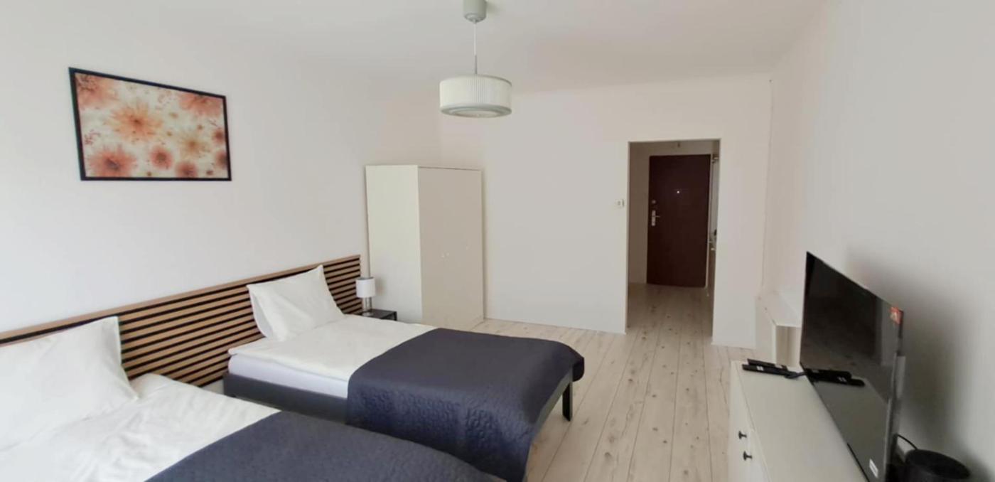 Apartament z 1 sypialnią. This apartment includes 1 bedroom, a kitchenette and 1 bathroom with a shower and a hairdryer. Guests can make meals in the kitchenette that is fitted with a stovetop, a refrigerator, kitchenware and a microwave. The apartment offers a flat-screen TV with streaming services, a wardrobe, an electric kettle, a carpeted floor as well as a quiet street view. The unit has 2 beds. Apartament - 2 osobowy. Powierzchnia pokoju ok.: 23 mkw.