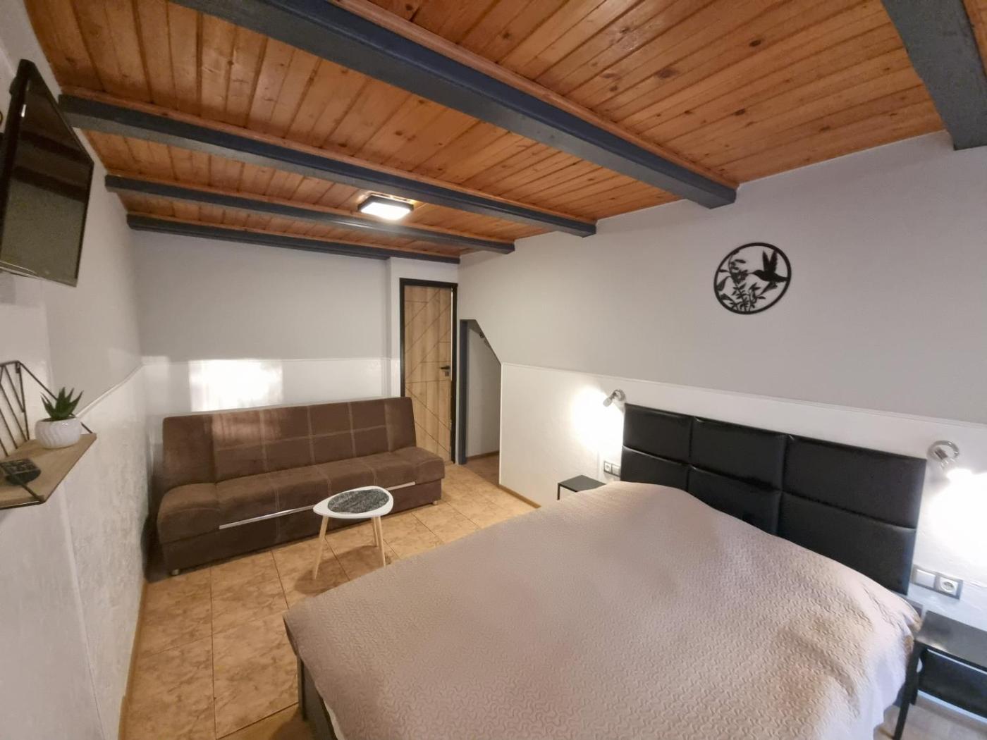 Pokój dwuosobowy z 1 lub 2 łóżkami i prywatną łazienką na zewnątrz pokoju. The twindouble room features a wardrobe and a barbecue, as well as a private bathroom boasting a shower. The twindouble rooms kitchen, which has kitchenware and a microwave, is available for cooking and storing food. The twindouble room offers soundproof walls, a seating area, a dining area, a flat-screen TV, as well as mountain views. The unit has 2 beds. Pokój Dwuosobowy z 1 lub 2 łóżkami - 3 osobowy. Powierzchnia pokoju ok.: 10 mkw. ;